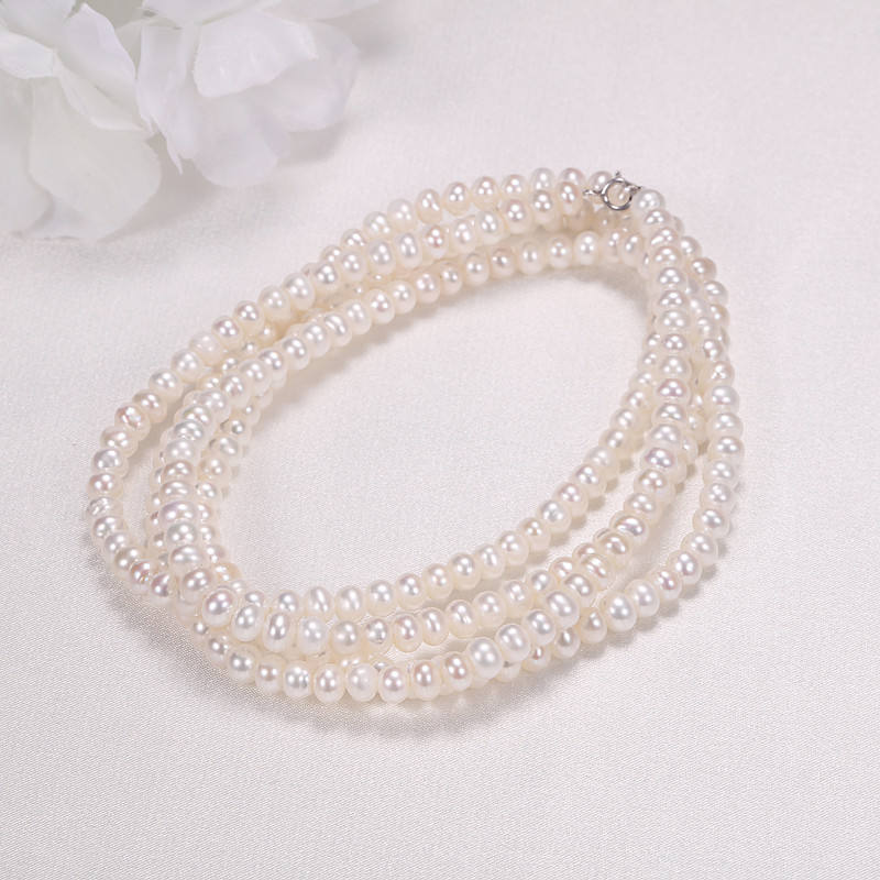 Zhuji Danshui Women's Long Style Necklace Nearly Double Layer Sweater Chain with True Pearl Beads New Product
