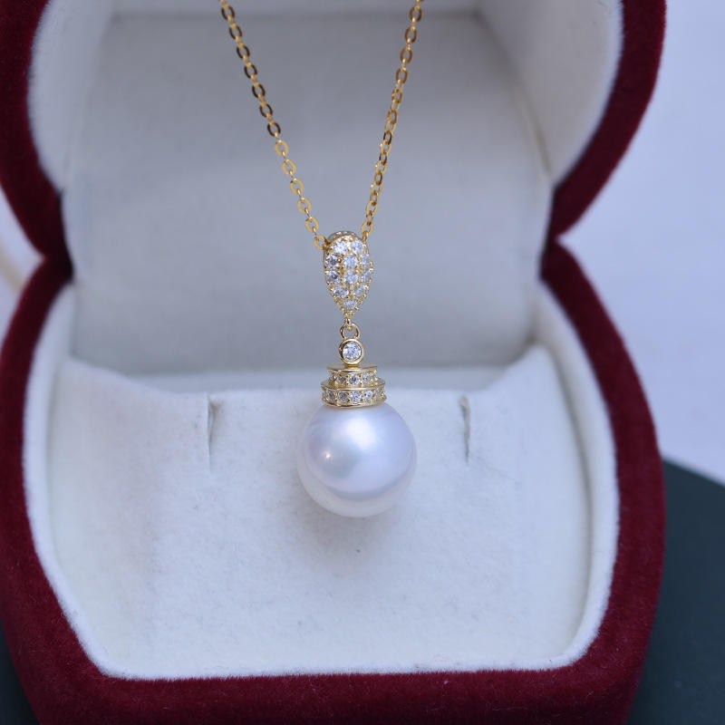 Zhuji Danshui Women's S925 Silver Crown Pendant Necklace 11-12mm Round Strong Light Fine Flaws Pearls Wholesale