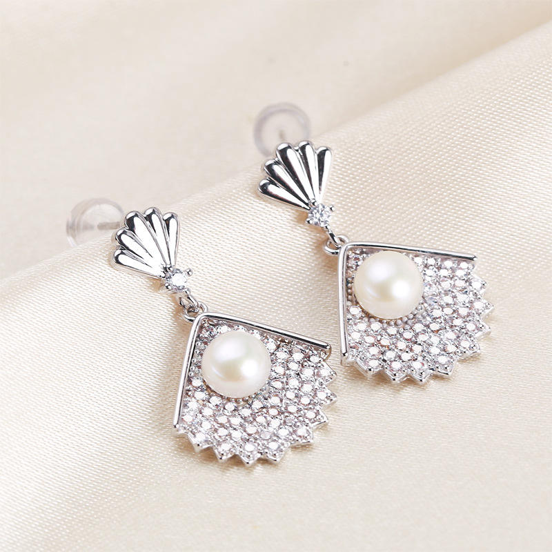 Zhuji Female Banquet Dress Accessories Zircon Inlaid Freshwater Pearl Earrings Fan Shaped Bridal Earrings