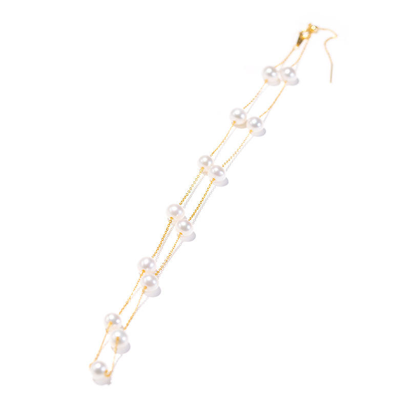 Zhuji G18K Golden Sky Starry 6-7mm Freshwater Pearl Pendant Necklace Clavicle Chain Simple Design Strong Light Micro Hair Tassel