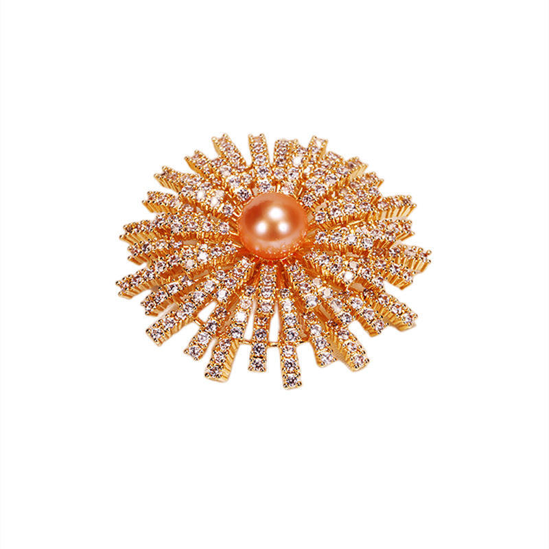 Zhuji Jewelry Wholesale Anti-Leakage Water Diamond DIY Wedding Chest Freshwater Edison Pearl Brooch Number Pattern Zircon Brooch