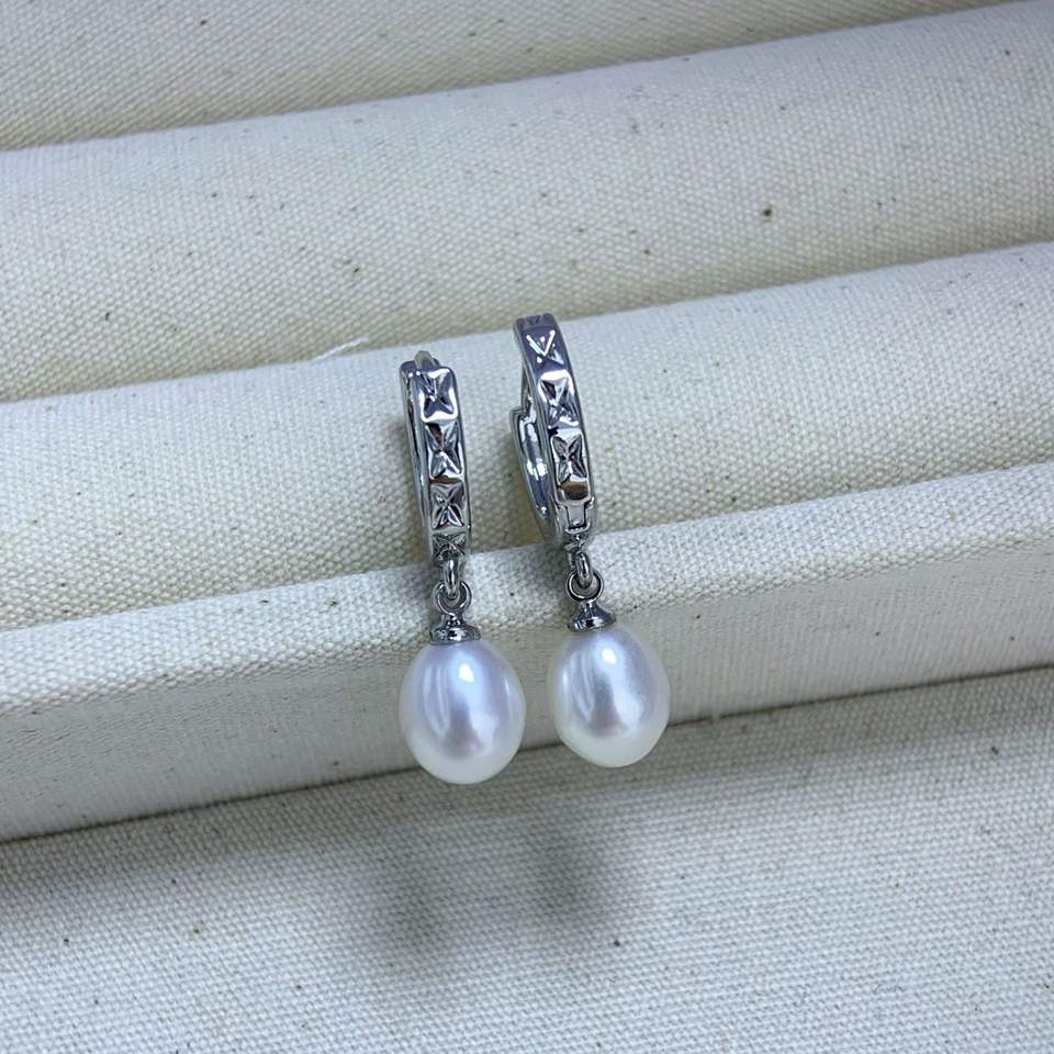 Boucles d'oreilles en perles d'eau douce de style luxueux Zhuji, 6-7 mm, forme de goutte d'eau, motif prismatique, naturel, sans défaut, boucle naturelle