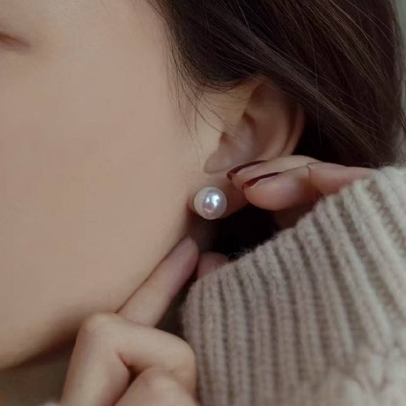 Zhuji Natural 11-12mm Freshwater Pearl Earrings Edison Pearl Style Flawless Round Mirror Light Fashionable Studs
