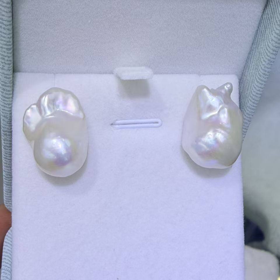 Zhuji Natural 13-18mm Freshwater Pearl Daba Luo Ear Nails Elegant Fashionable Pure Silver Earrings for Women Wholesale
