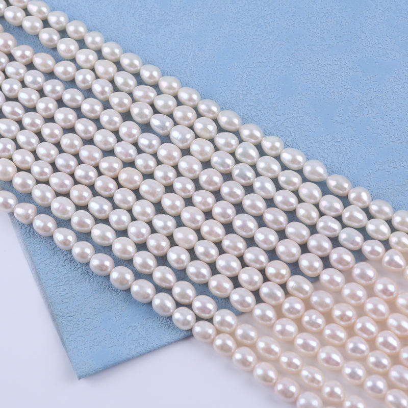 Zhuji Natural 8-9mm White Freshwater Rice-Shaped Pearl Necklace Baroque Loose Semi-Finished Beads for DIY Jewelry Wholesale