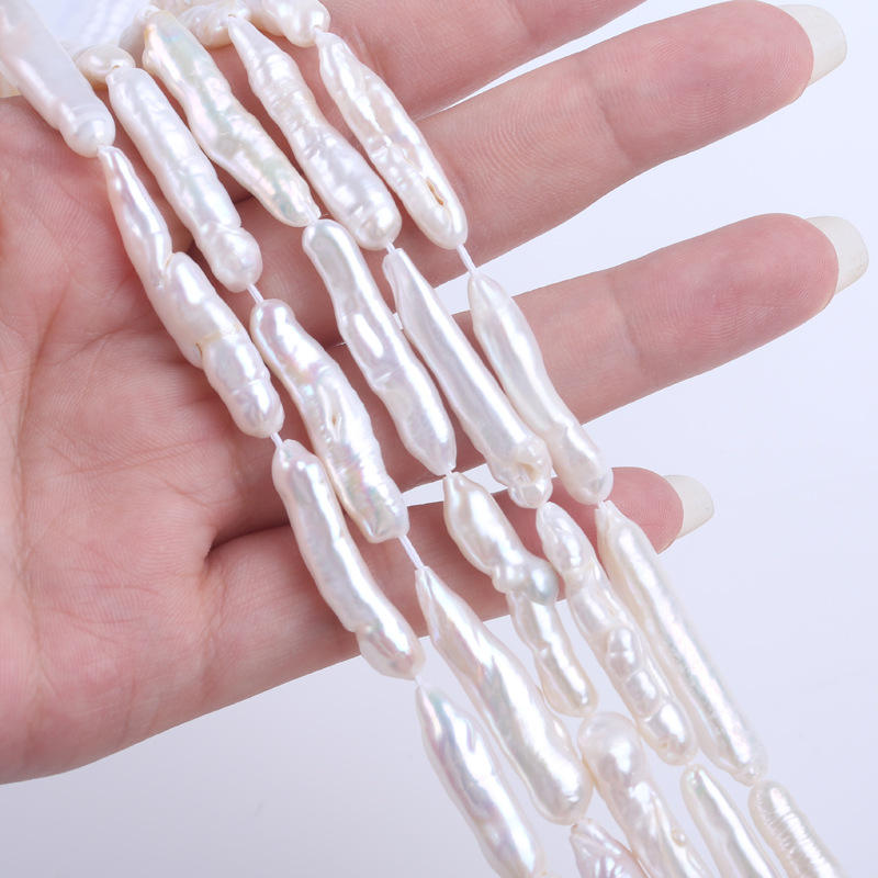 Zhuji Natural Freshwater 6-8mm White Pearl String Loose Beads Straight Hole Toothpick for PiPA Instrument Necklace Bead String