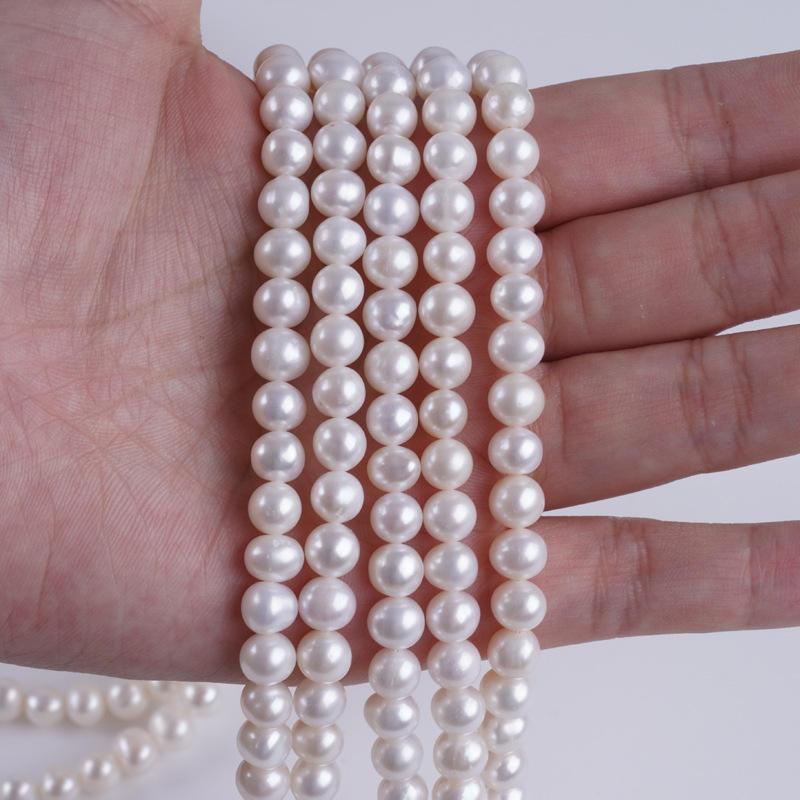 Zhuji Natural Freshwater 7-8mm White Nearly Round Pearl Loose Beads String for DIY Necklace Bracelet Wholesale