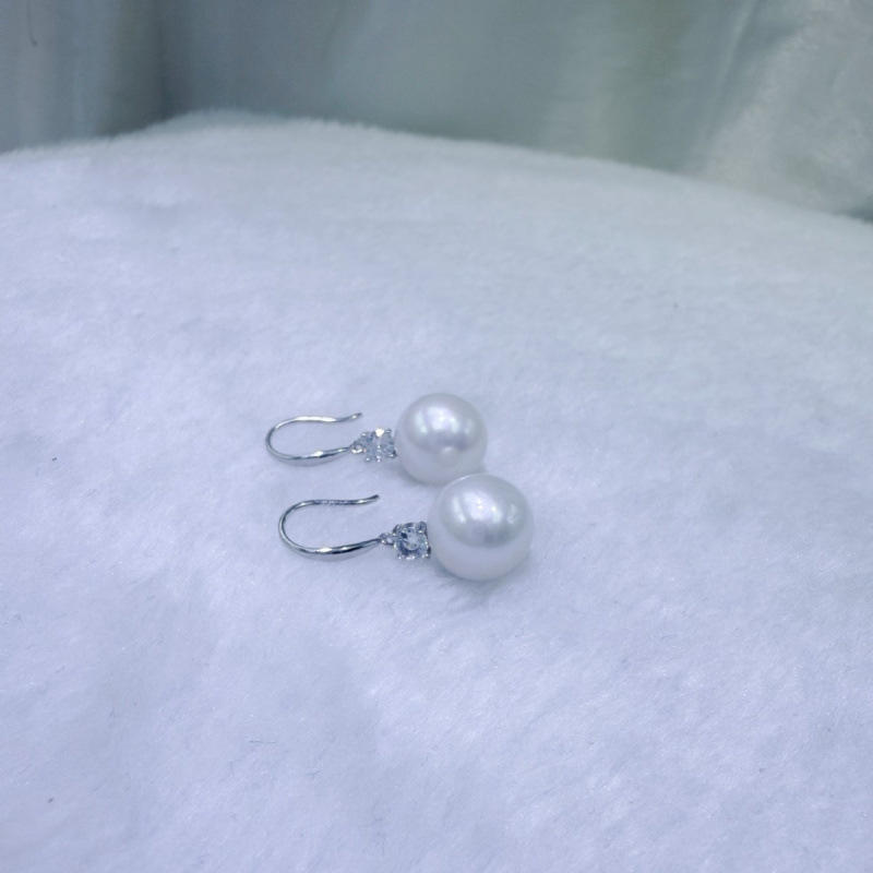 Zhuji Natural Freshwater Pearl Earrings 12-13mm Round Almost Flawless Strong Light Pure Silver Handmade Earhook Style