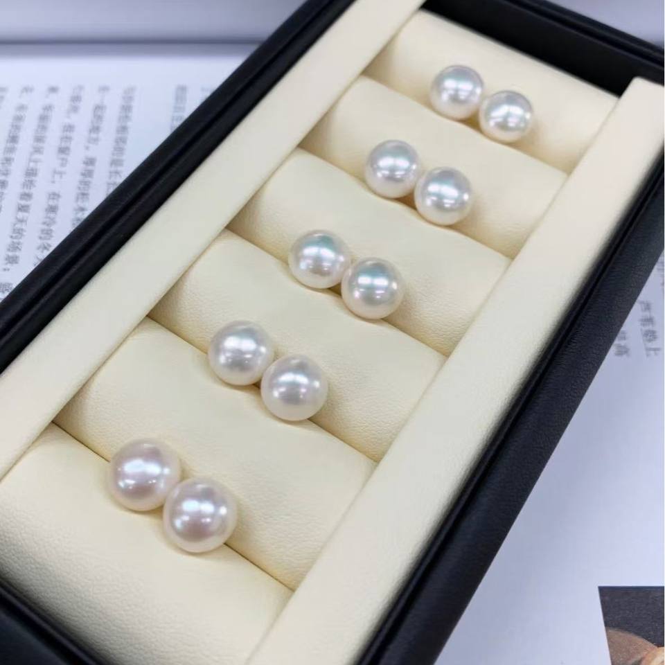 Zhuji Natural Freshwater Pearl Earrings 4-10mm Mantou Vegetables with Daily S925 Sterling Silver Daily Use by Ding Qiangguang