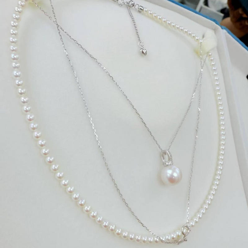 Zhuji Natural Freshwater Pearl Necklace 3-4mm Round with 10-11mm Round Almost Flawless Fine Pendant Universal Necklace