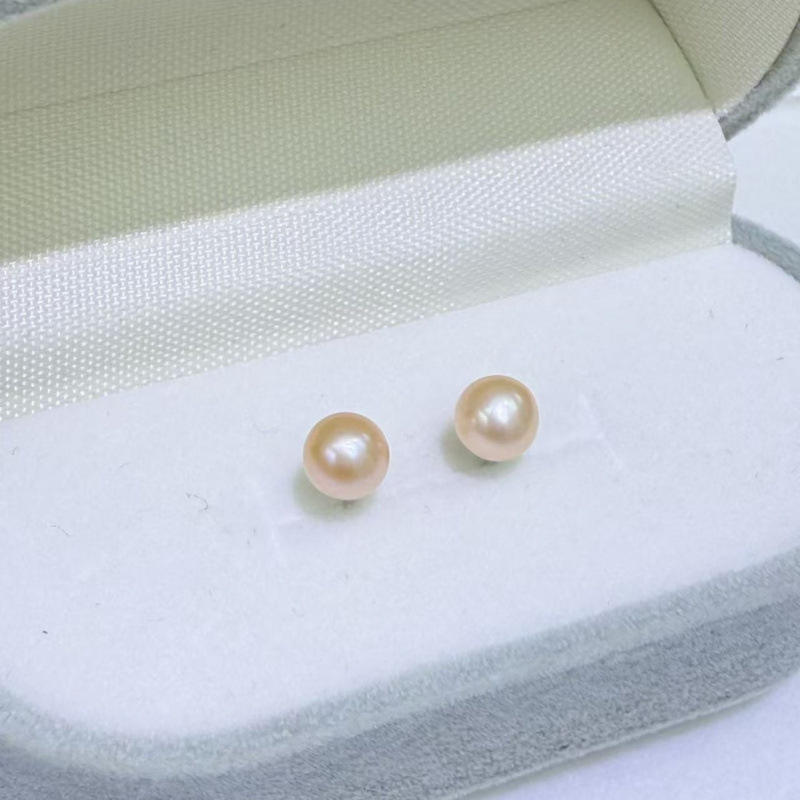 Zhuji Natural Freshwater Pearl Stud Earrings Versatile 5-6mm Round Flawless Pink Pure Silver