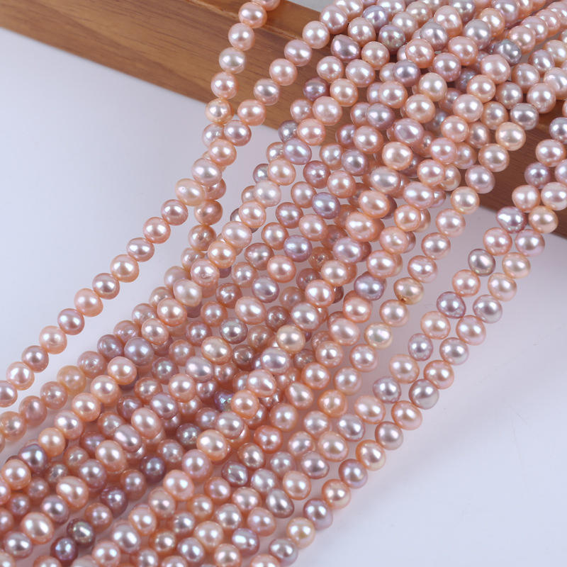 Zhuji Pearl Natural Freshwater 5-5.5mm Pink Purple Elliptical String for DIY Necklace Bracelet Wholesale