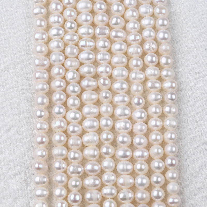 Zhuji Pearl Wholesale 7-8mm Freshwater Pearl String Natural DIY Accessories with Punch Potato Bead for Stringing