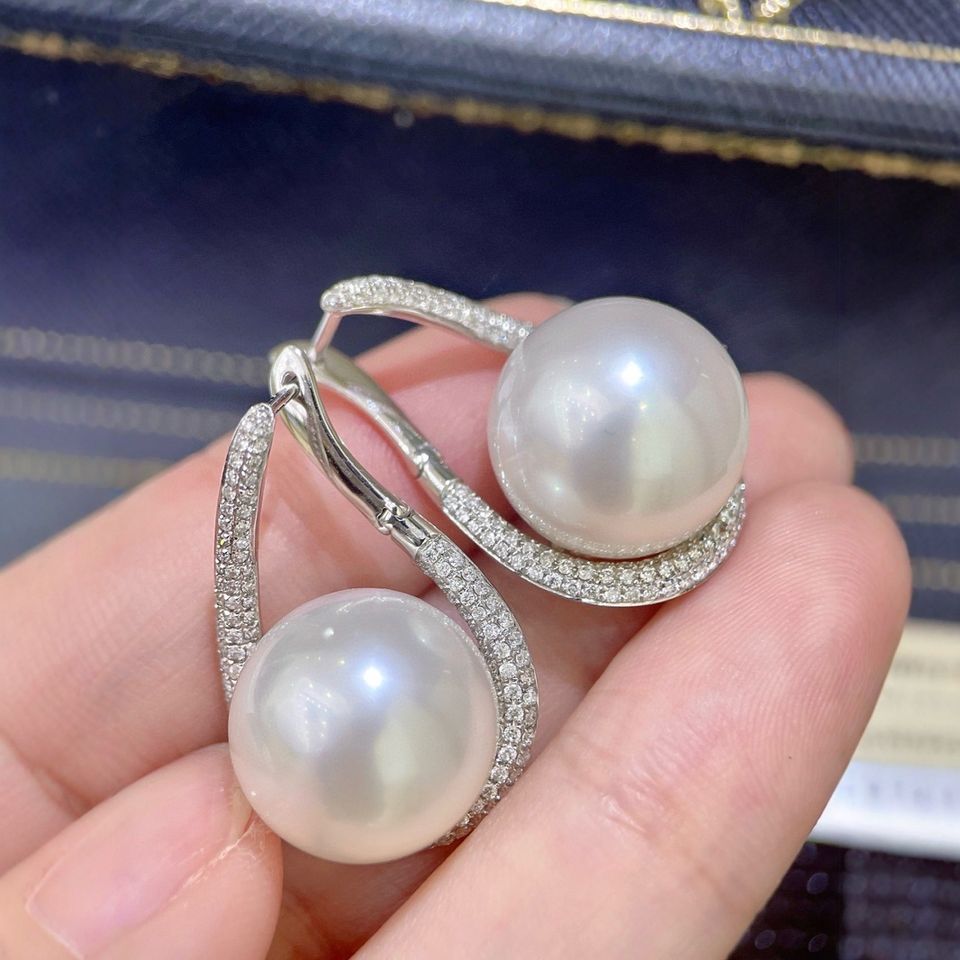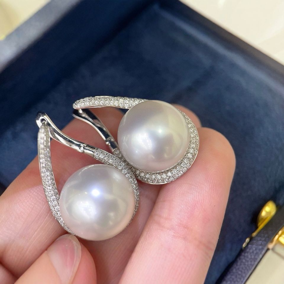 Zhuji Pearl Wholesale S925 Silver Ear Buckle Gift Box 12-13mm Natural Pearls Comparable Australian White Quality Earrings
