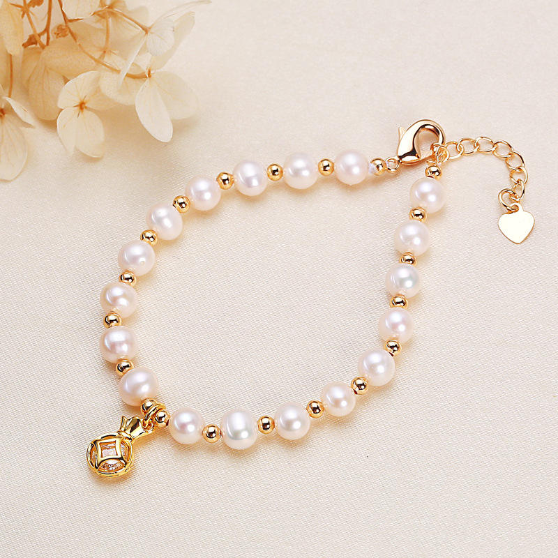Zhuji Pearl Women's Handmade Freshwater Baroque Bracelet Lucky Bag Crystal Pendants & Charms Wholesale Jewelry