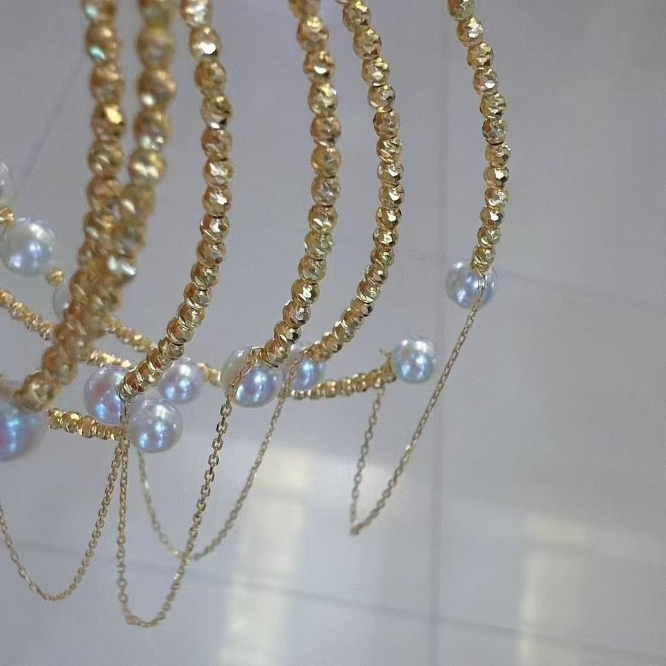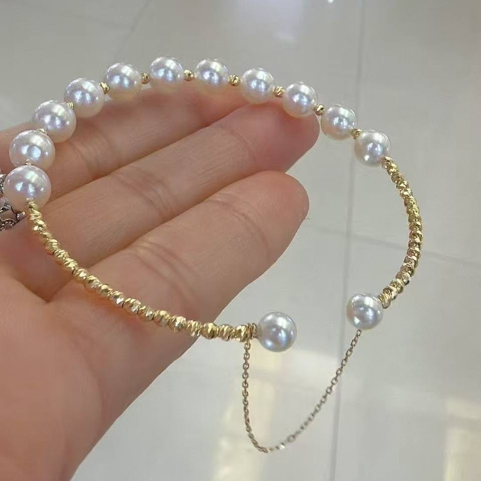 Zhuji Pearl's 18K Golden Anchor Charm Bracelet 6-6.5mm Round Strong Light Sea/Freshwater Pearl for Gifts