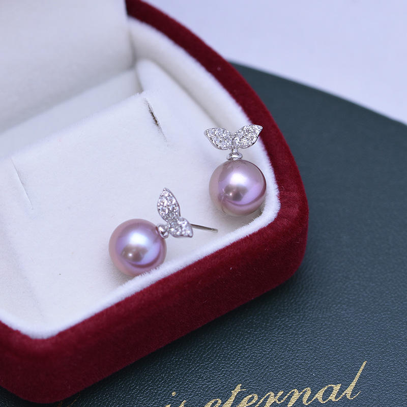 Boucles d'oreilles en argent Zhuji S925 avec perles d'eau douce de 8-9 mm, style simple et tendance, design plat et large, transfrontalier
