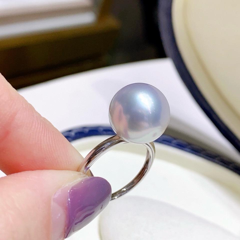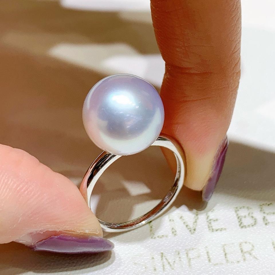 Zhuji Wholesale 12-13mm Natural Pearl Ring Simple Thick Silver Design Versatile and Fashionable for Personal Use or Gift