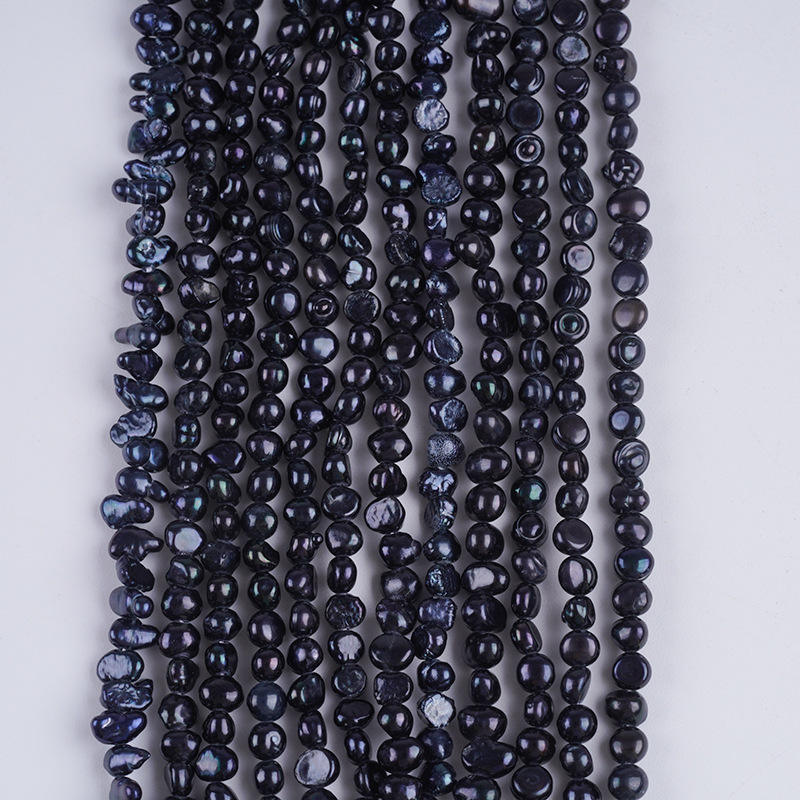 Zhuji Wholesale Natural Freshwater Pearl 3-4mm Black Potato-shaped Irregular Two-Sided Light DIY Source Side Hole Loose Potatoes