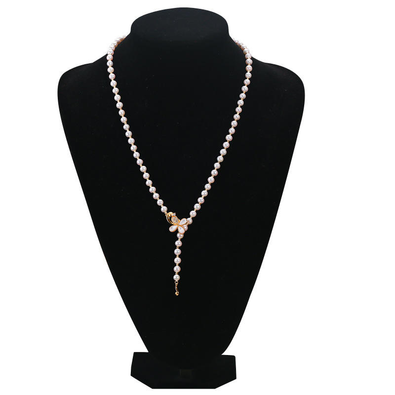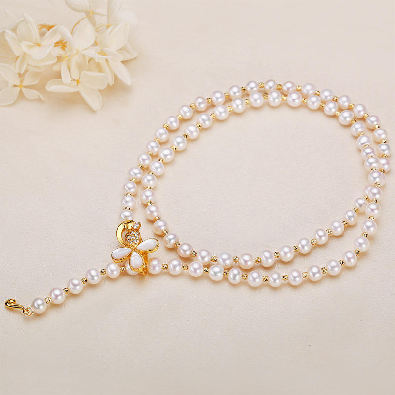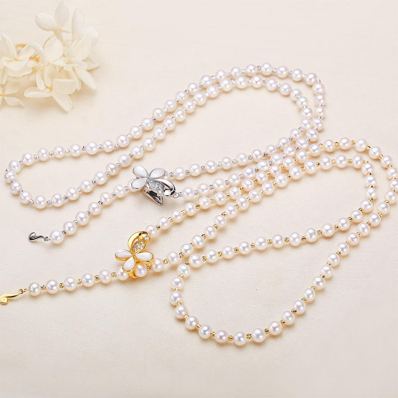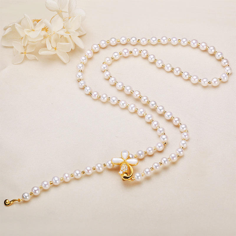 Zhuji Women's Long Style Freshwater Pearl Necklace Flower Buckle Neck Decoration Real Pearl Collarbone Chain for Autumn Winter