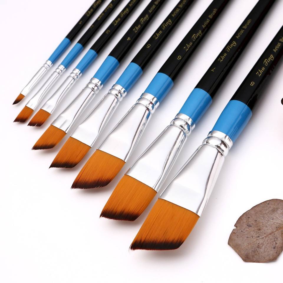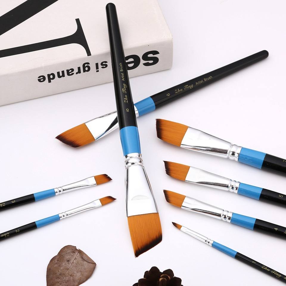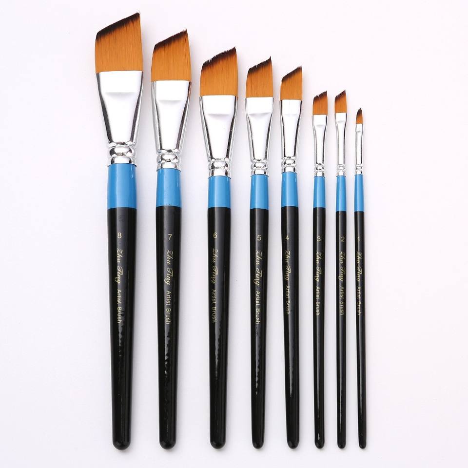 Zhuting 8 modèles pinceaux à pic plat unique manche en bois cheveux en Nylon pour aquarelle Gouache peinture à l'huile acrylique