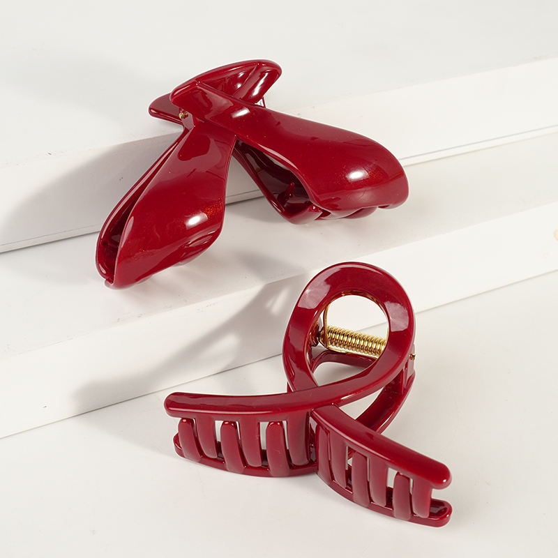 ZiTeng Ancoral Custom Fine Lightning Glitter Hair Claw Clips French Style Barrette Women's Red Resin Hairpins