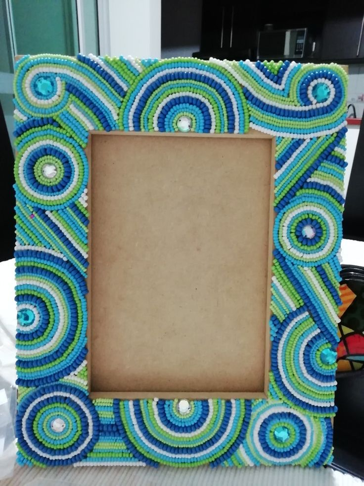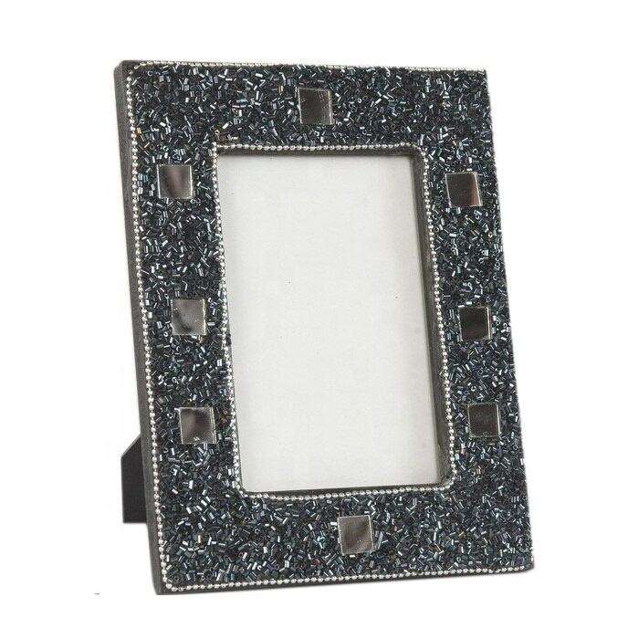 Cadre photo rectangulaire en perles de verre à motif zigzag, porte-photo artisanal en perles, cadre portrait de table pour la maison et le bureau