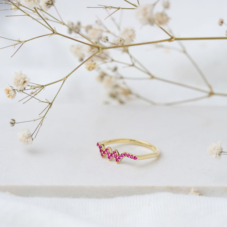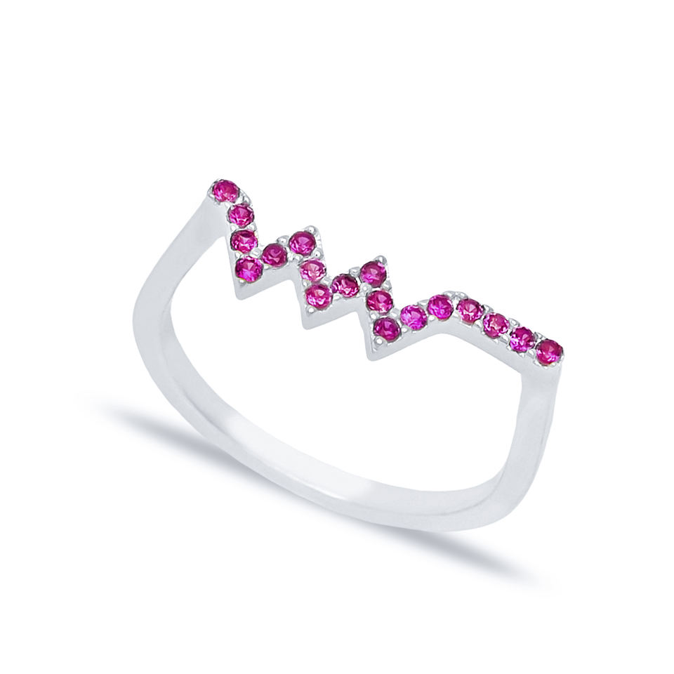 Zigzag Ruby Zircon Pierre Perlé Anneau CZ En Gros Turc Fabriqué À La Main À La Mode Minimaliste 925 Bijoux En Argent Sterling