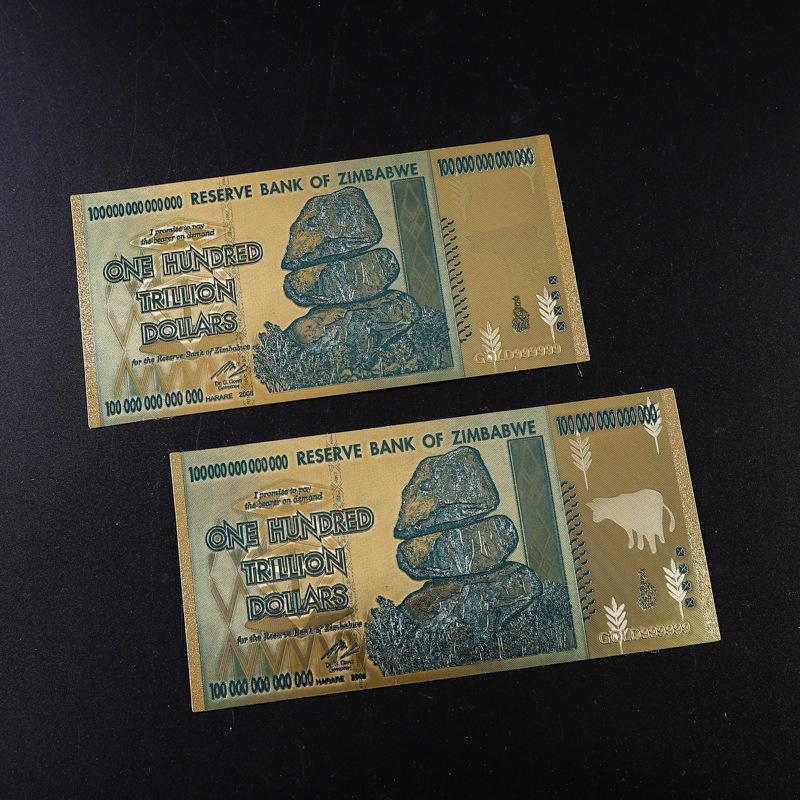 Billets de banque en métal personnalisables du Zimbabwe 100000000000000 monnaie en feuille d'or commémorative pour la visualisation de l'artisanat