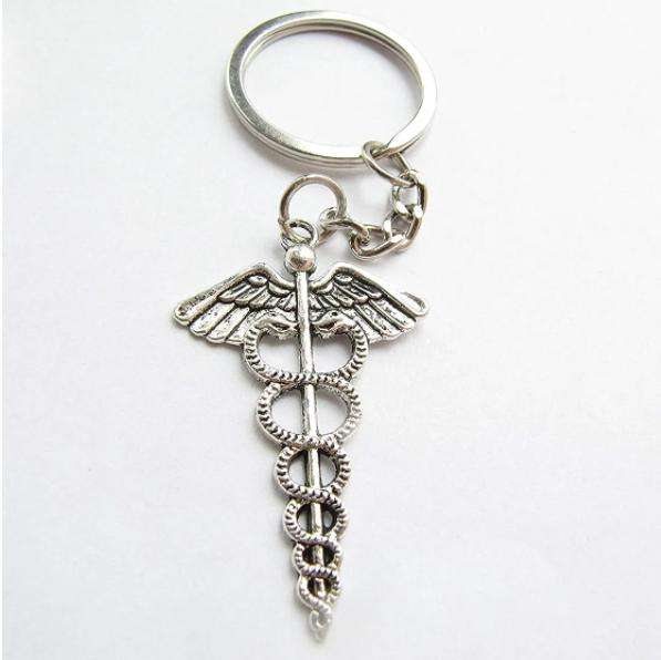 Fabricant de porte-clés en alliage de zinc, porte-clés personnalisés avec symbole de secours, porte-clés médicaux pour médecins et infirmières, porte-clés 3D en métal caducée serpent