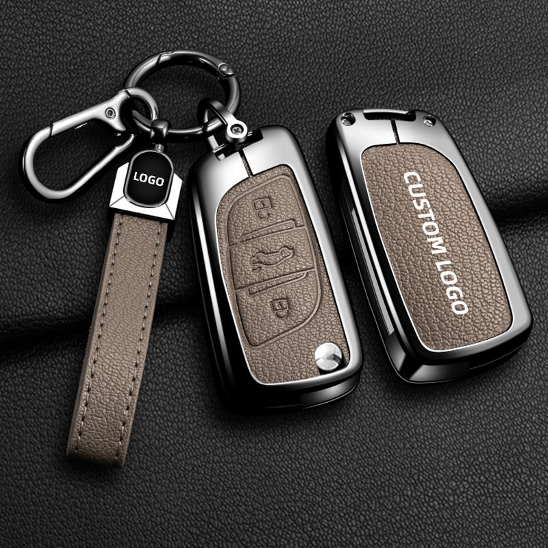 Housse de clé de voiture en alliage de zinc et cuir pour Peugeot 408 4008 206 207 301 307 308 RCZ, luxe, anti-rayures, anti-chute, protection complète