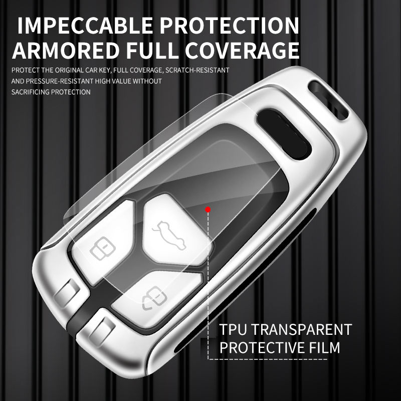 Zinc Alloy Leather Key Case Cover Shell for Audi A6 A5 Q7 S4 S5 A4 B9 A4L 4M TT TTS TFSI RS 8S 8W Car Key Logo Auto Accessories