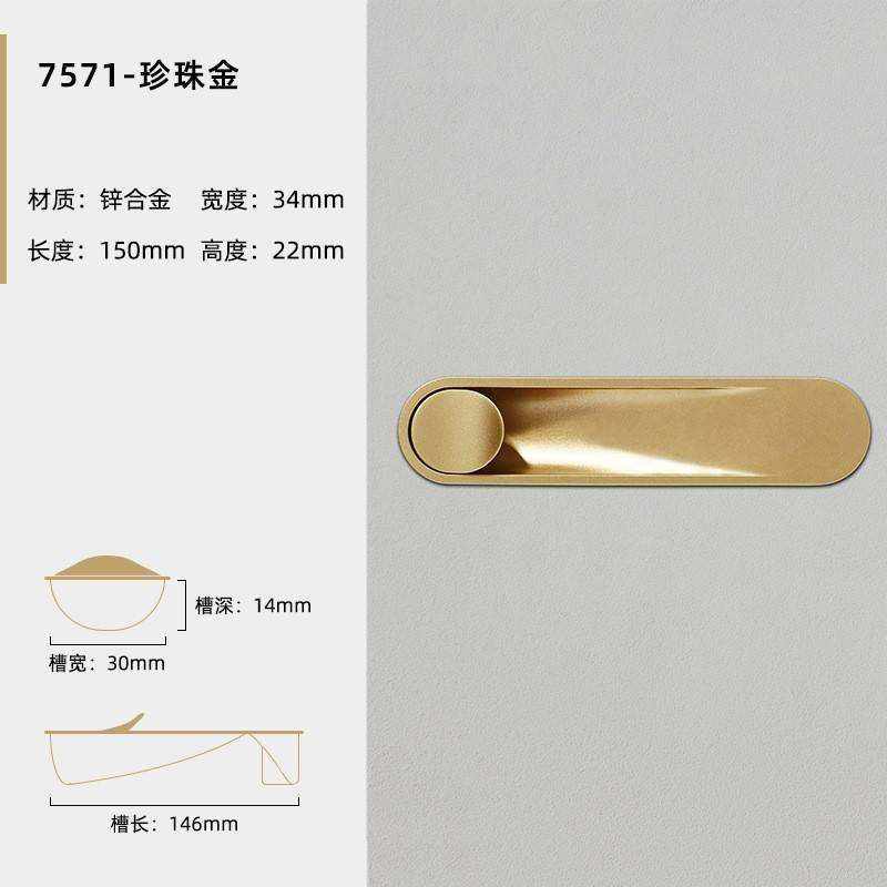 Poignée de tiroir dissimulée moderne en alliage de zinc pour armoire, placard, chambre, salon - Gris/Doré, rectangulaire, installation facile