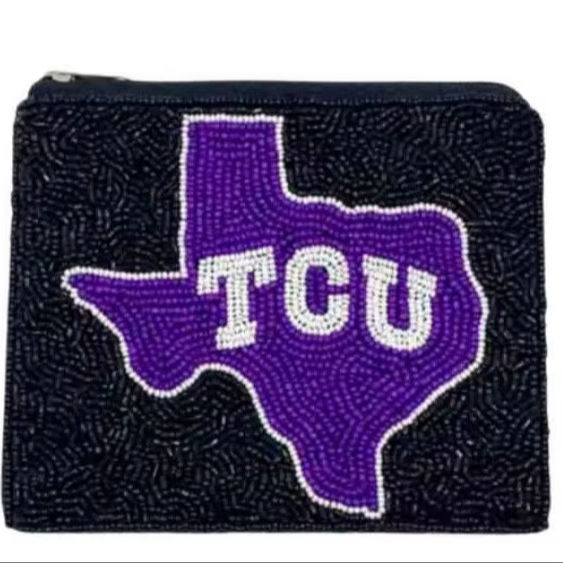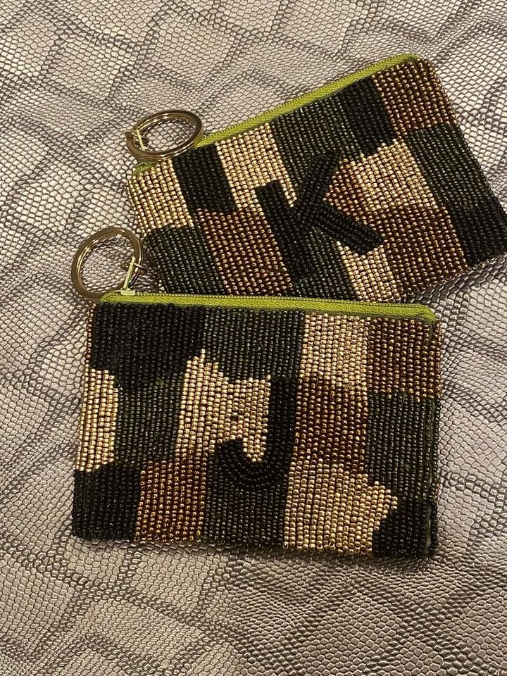 Porte-monnaie perlé fait main en coton avec fermeture éclair et anneau détachable, personnalisable pour le rangement d'argent et de cartes lors des matchs sportifs