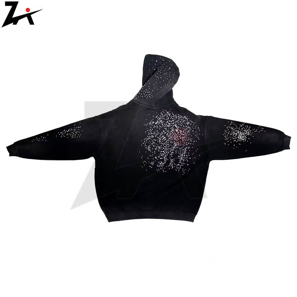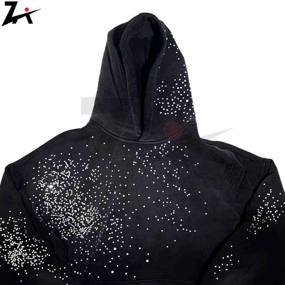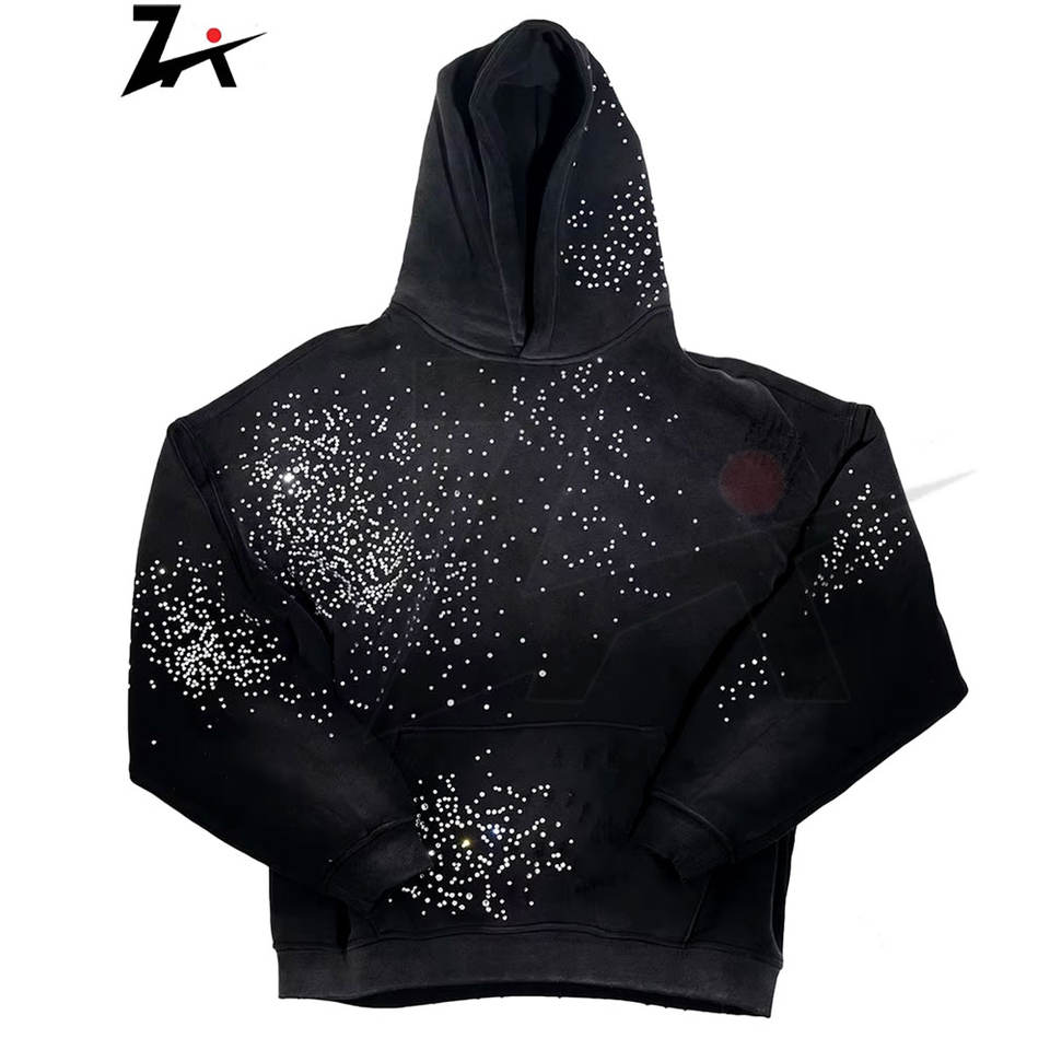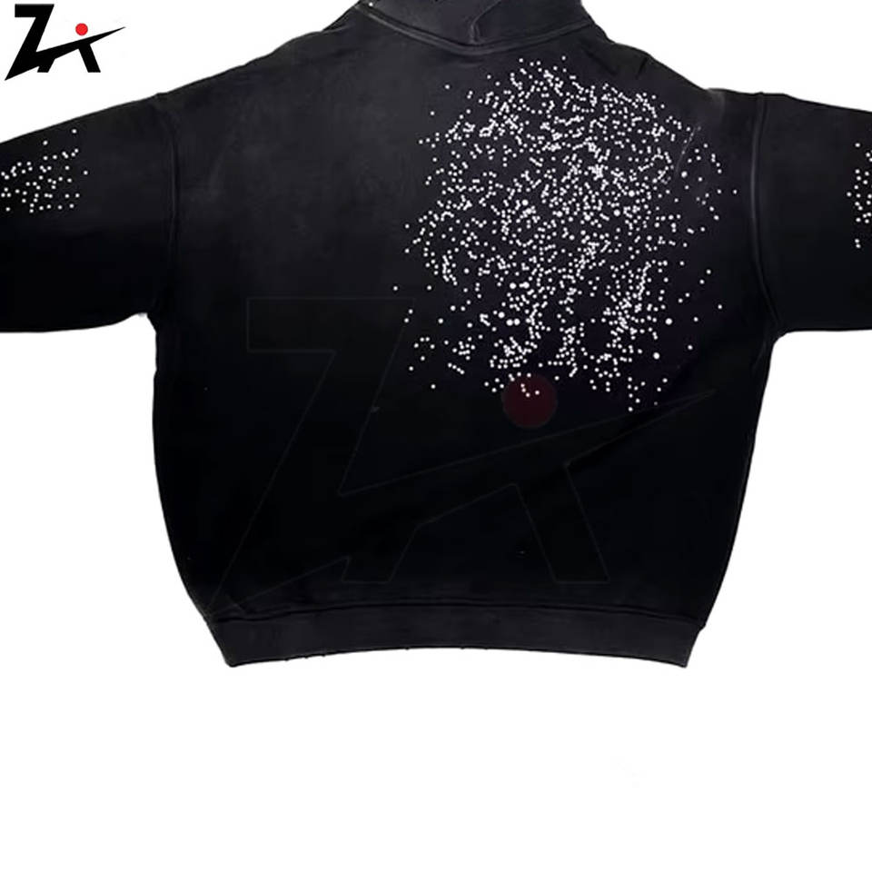 Zip Hoodie Clothes Men Women Hip Hop Rhinestone Sequin Retro Distressed Oversized Hoodie Sweatshirt Jacket Streetwear