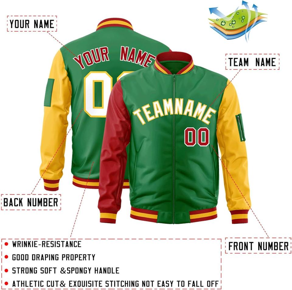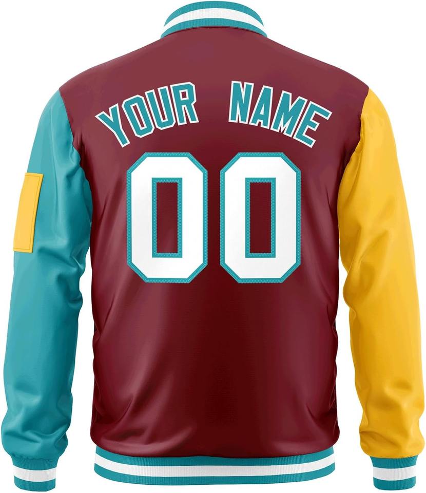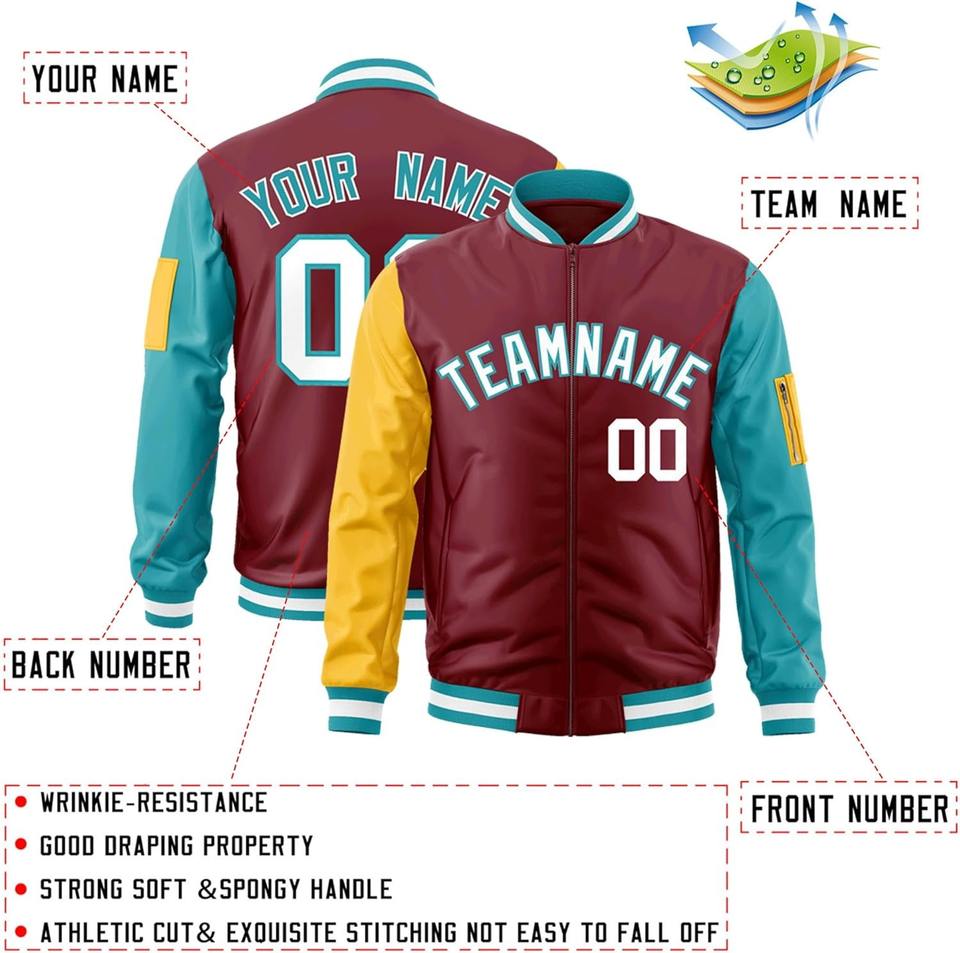 Veste universitaire zippée bras gauche poche zippée nom de l'équipe personnalisée numéro broderie contraste couleurs collège Bomber Letterman veste
