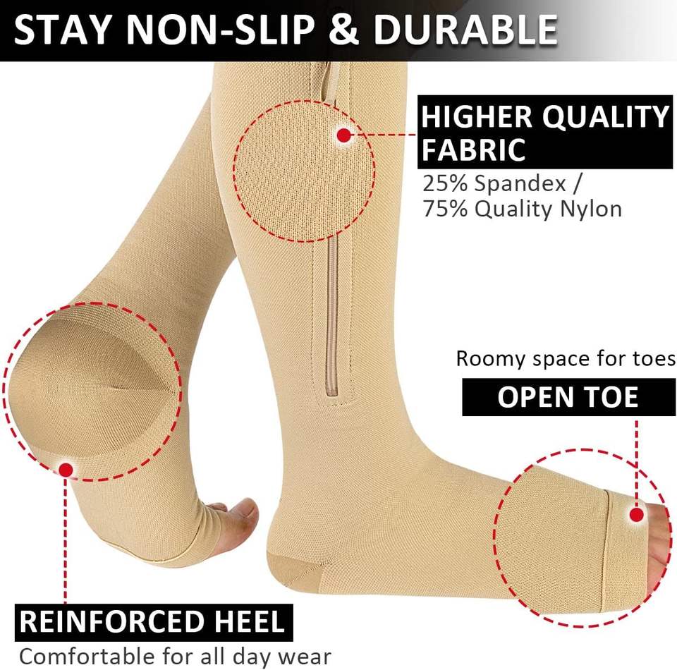 Bas de Contention Mi-Bas à Fermeture Éclair 15-20 mmHg à Bout Fermé pour Varices, Œdèmes, Récupération, Femmes Enceintes et Infirmières