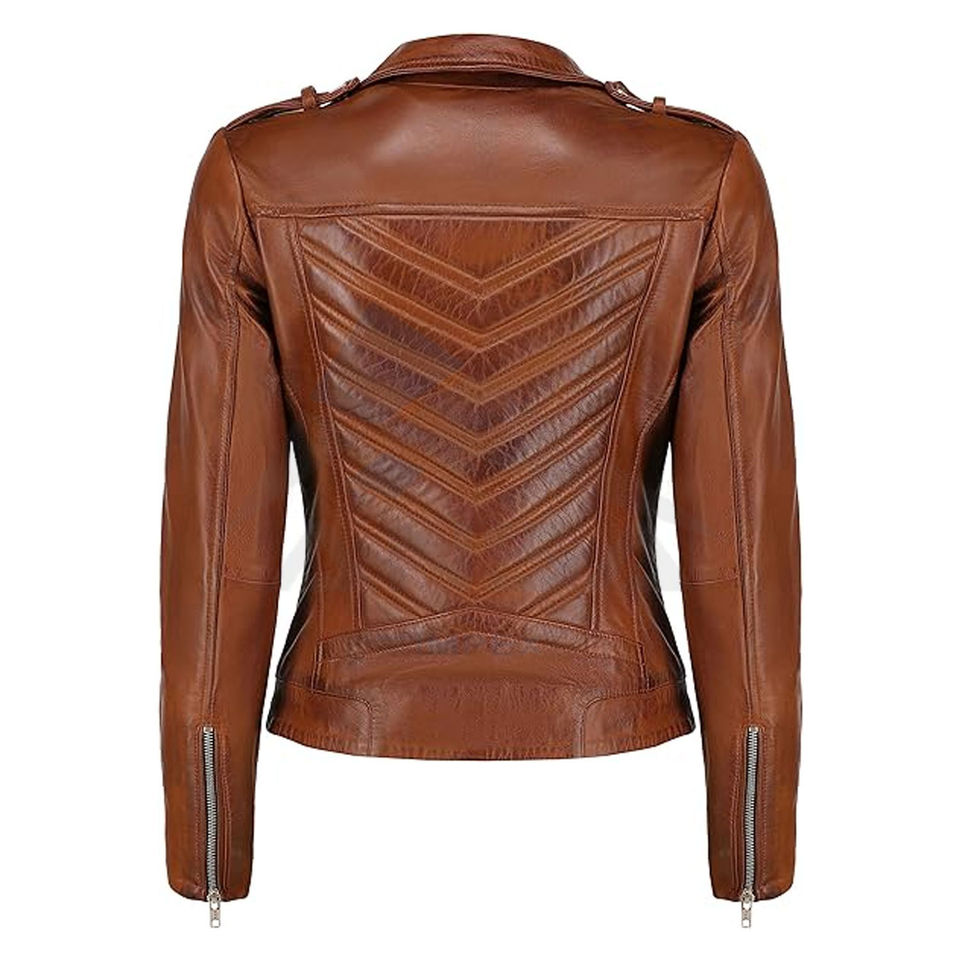 Blouson Moto Décontracté en Cuir pour Femme avec Fermeture Éclair, Idéal pour la Conduite en Extérieur et les Voyages Hivernaux, Haut de Gamme, Durable, Broderie Rayée