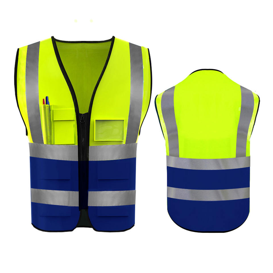 Gilet de sécurité pour homme avec fermeture éclair, multi-poches, respirant, vêtements de travail en plein air, vestes à haute visibilité, gilet réfléchissant