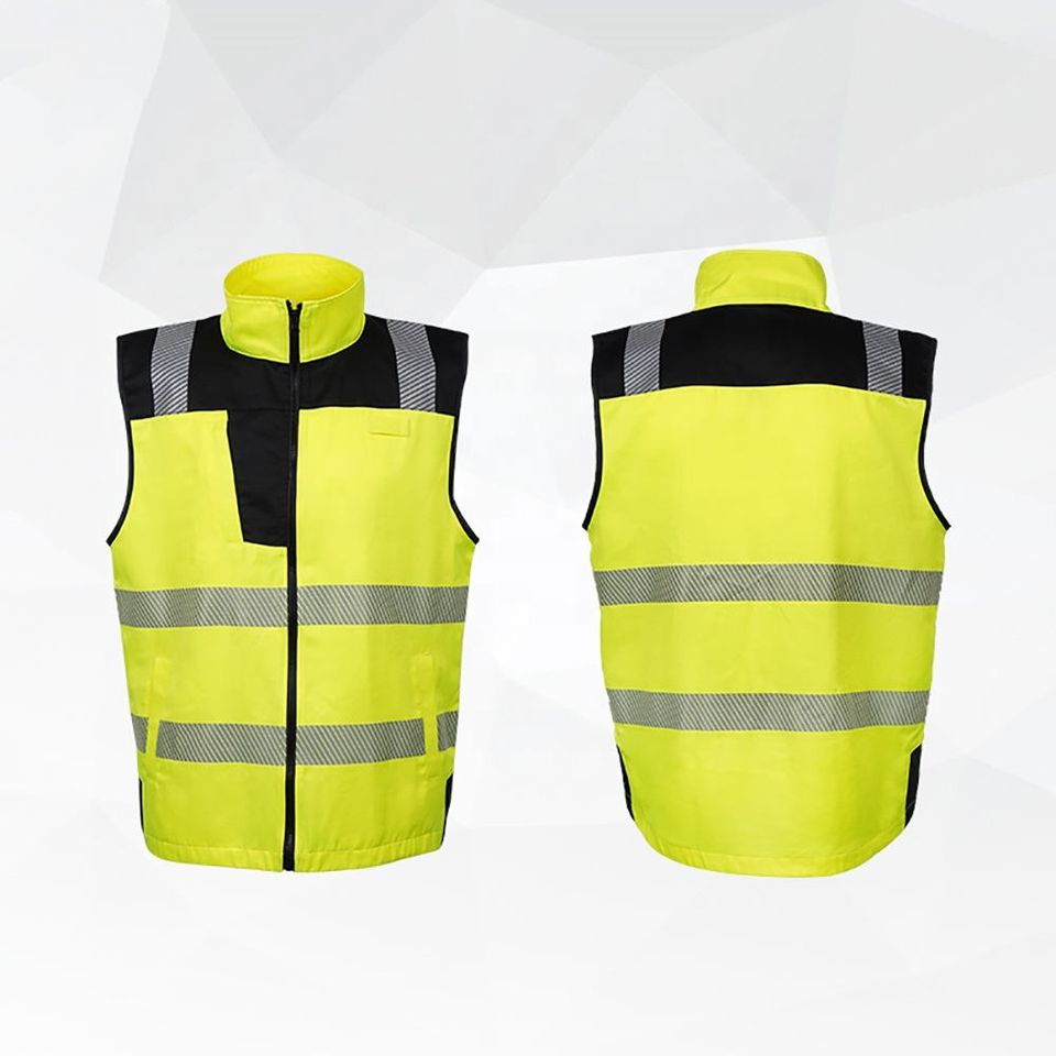 Gilet de sécurité réfléchissant ANSI Classe 2 respirant à haute visibilité avec LED clignotante, noir, poche multifonctionnelle, logo personnalisable