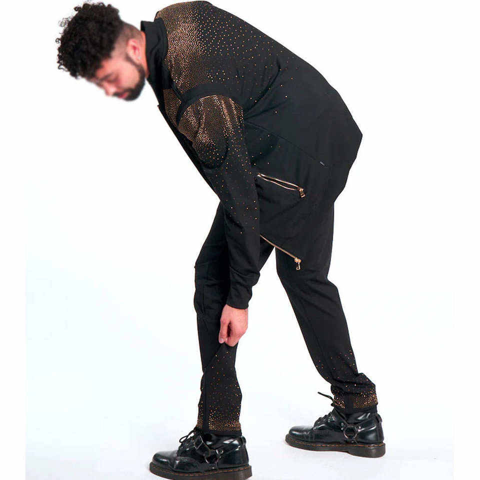 Ensemble de survêtement vintage avec sweat à capuche zippé orné de strass et pantalon évasé pour homme, style streetwear délavé à l'acide