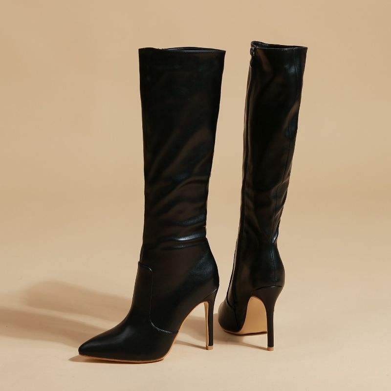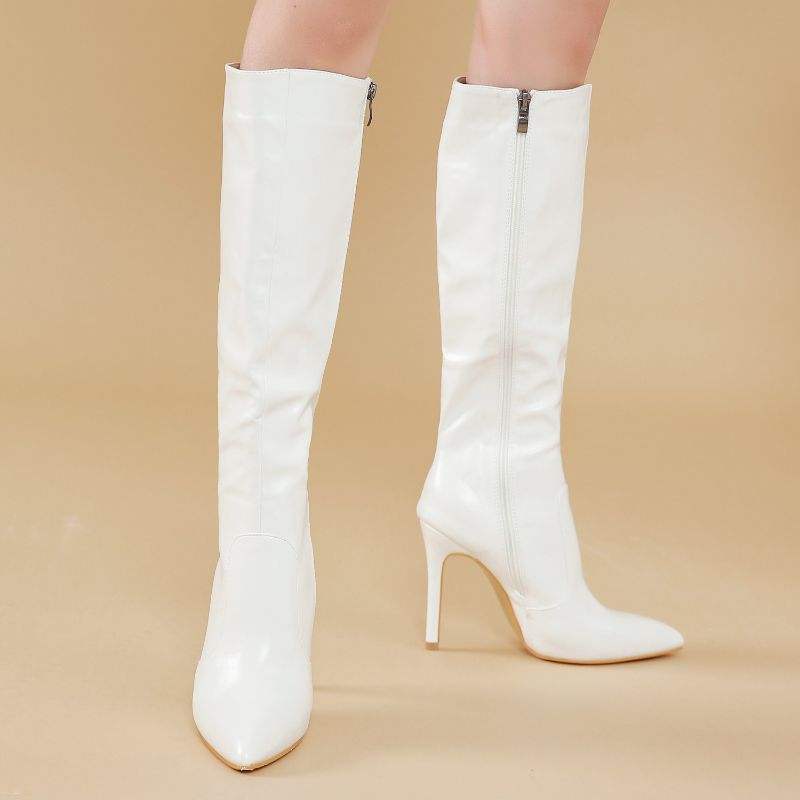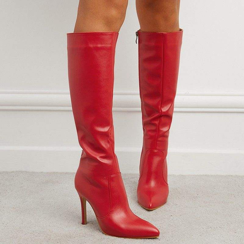 Bottes hautes pour femme en cuir PU rouge, imperméables, à talon aiguille, avec fermeture éclair latérale, collection 2025