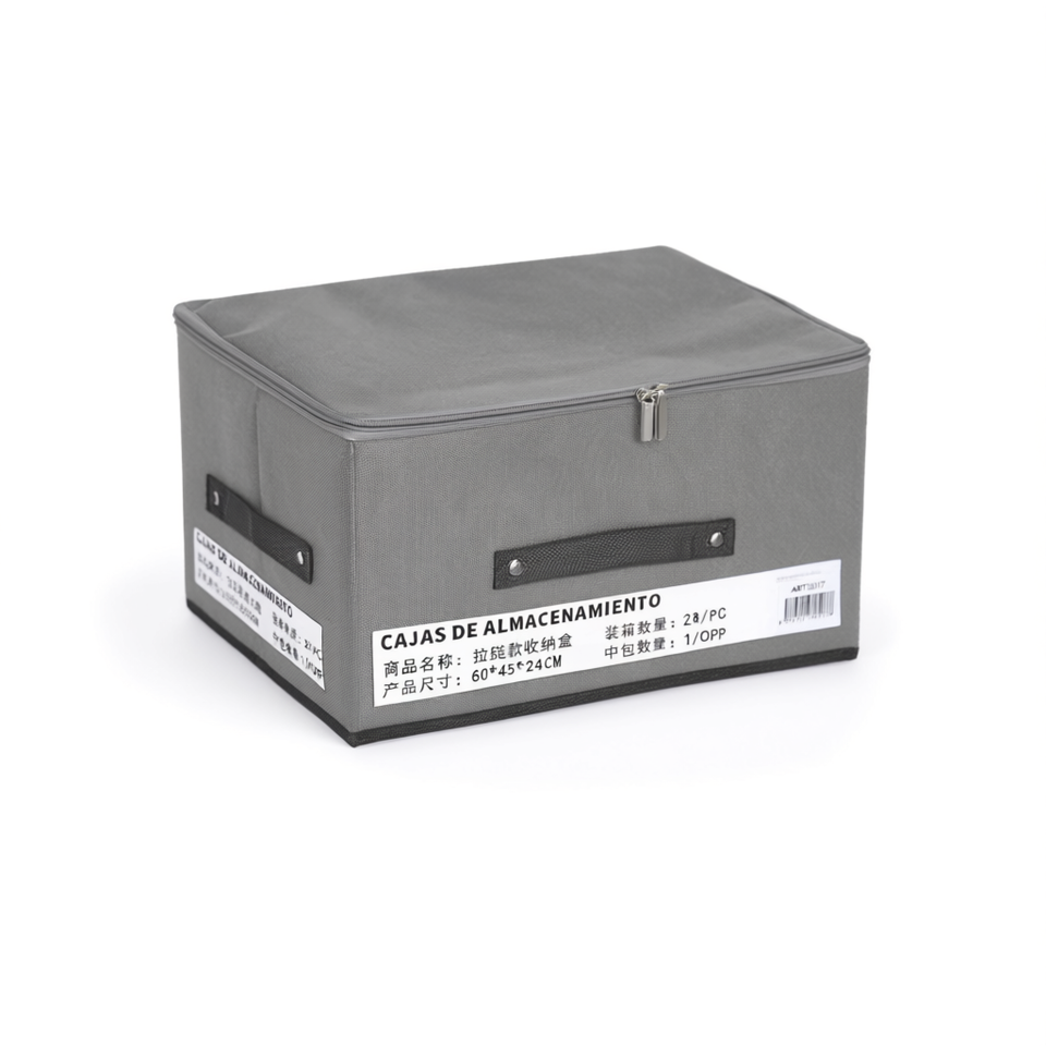 Boîte de rangement On Teck 60x45x24 cm, organisateur en tissu avec fermeture à glissière pour vêtements, usage domestique