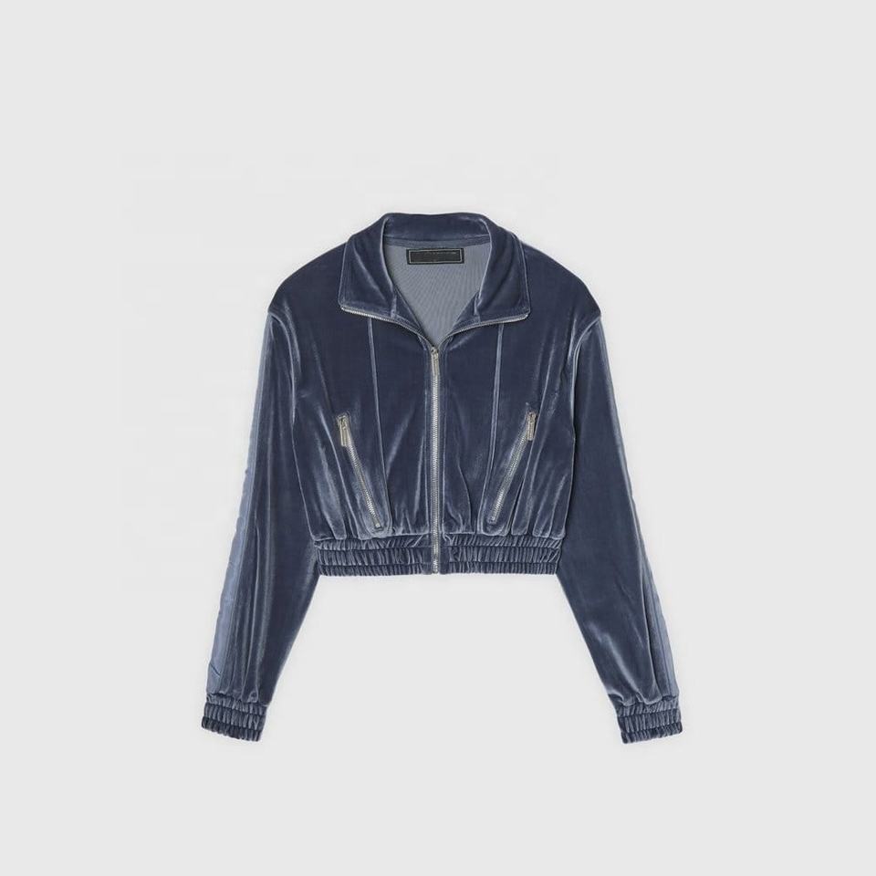Survêtement en velours côtelé à fermeture éclair, ensemble deux pièces bleu marine personnalisé, décontracté, ample, personnalisé, pour femmes