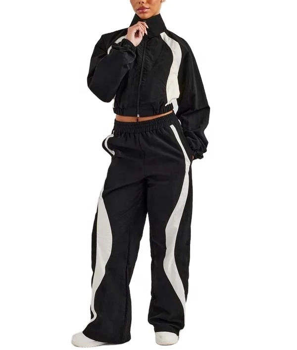 Ensemble de survêtement coupe-vent zippé 2 pièces unisexe, épais, coupe oversize, délavé à l'acide, respirant, en nylon écologique, style streetwear personnalisé