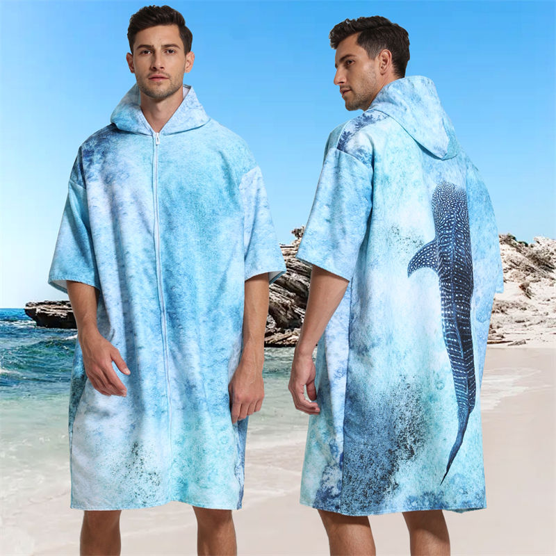 Robe à langer à fermeture éclair avec capuche, serviette à langer à séchage rapide pour le surf, la plage, les sports de plein air et les hommes, serviette de plage portable