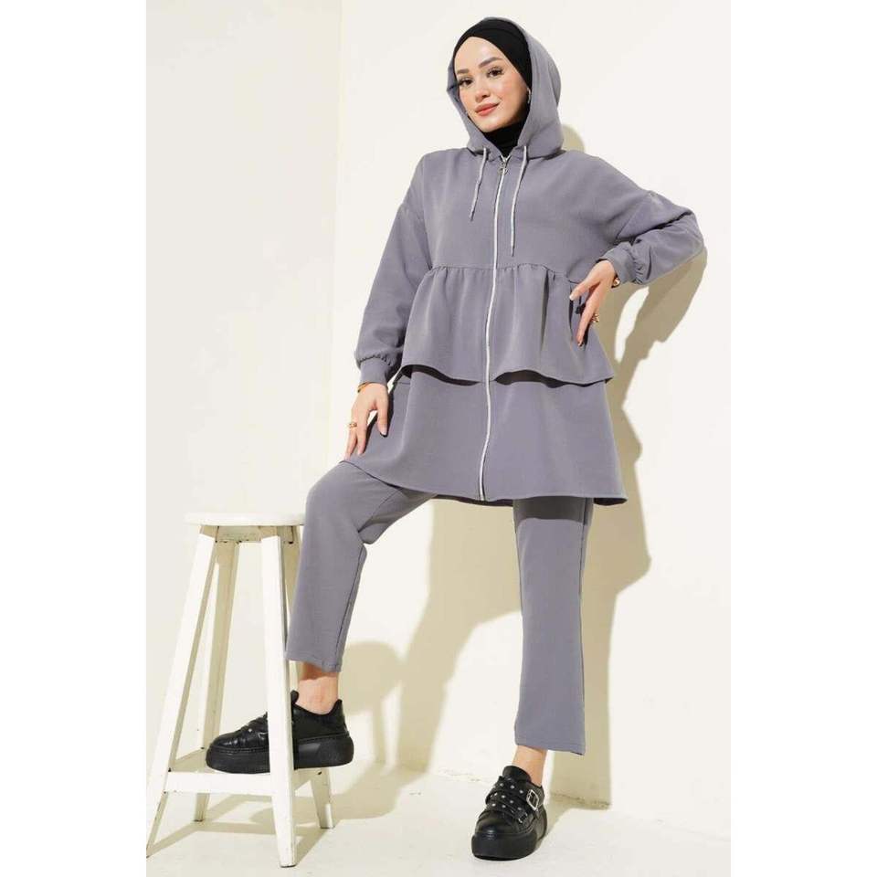 Costume gris à double boutonnage avec volants et fermeture éclair, tailles M-2XL TR