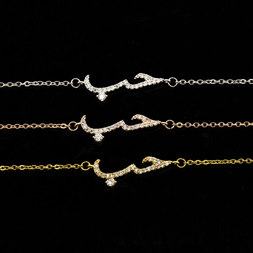 Zircon langue arabe déclaration d'amour collier pour femmes cristaux arabes pendentif collier ras du cou bijoux de mariage cadeaux