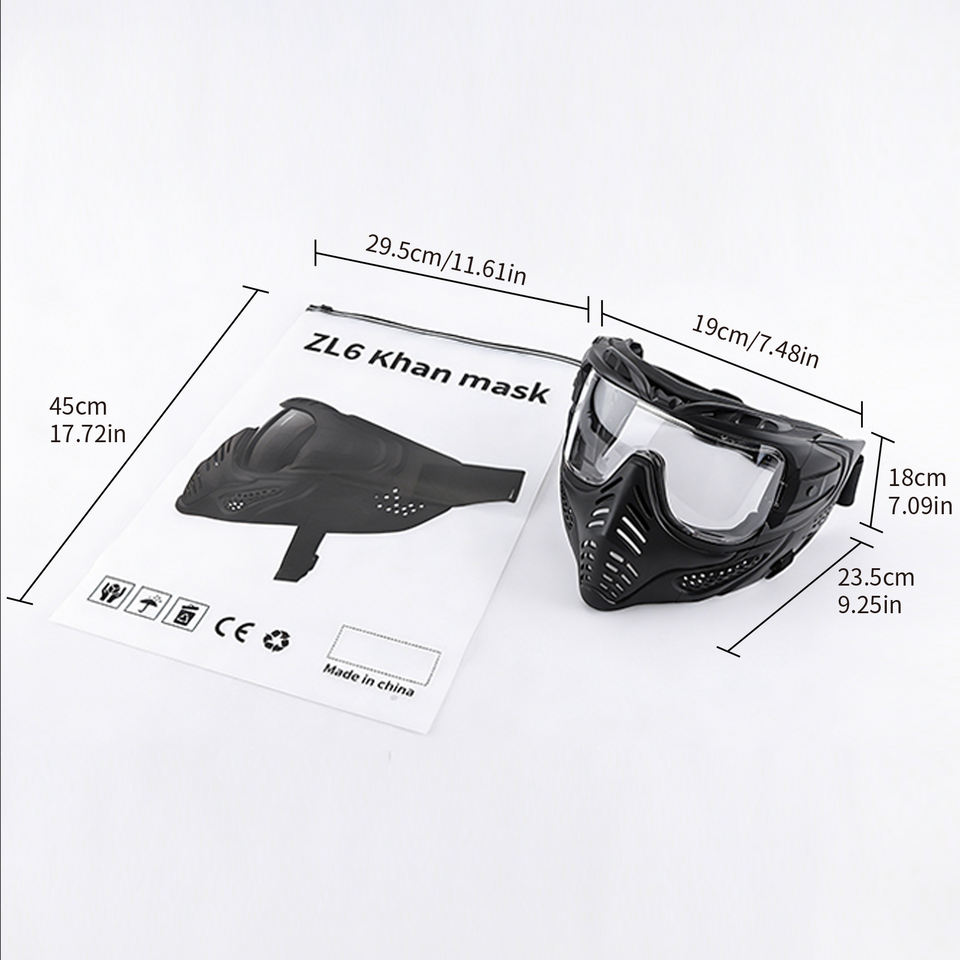 Masque de paintball résistant aux chocs Zlang, fabriqué en TPR, noir, masque de paintball à gaz avec lunettes