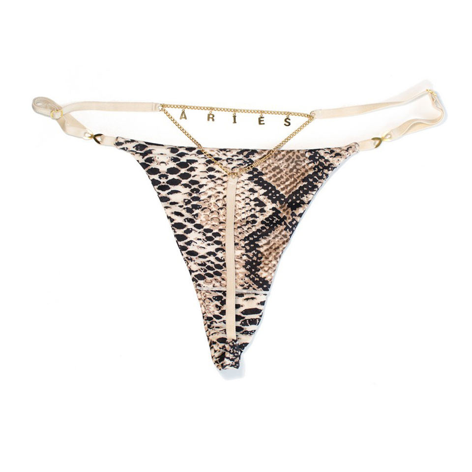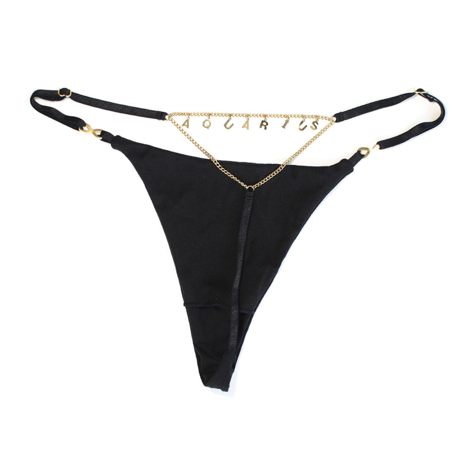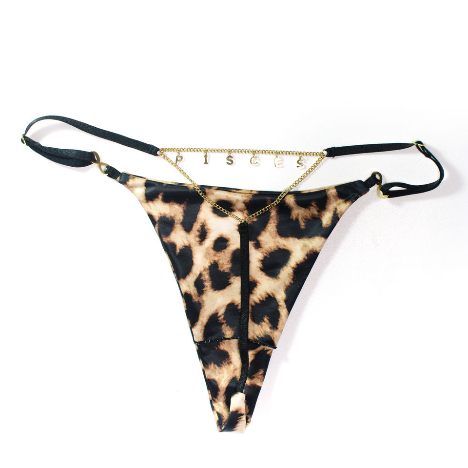 Logo du zodiaque personnalisé grande taille sous-vêtements pour femmes Lingerie Sexy string G culotte string avec chaîne pendentif lettres